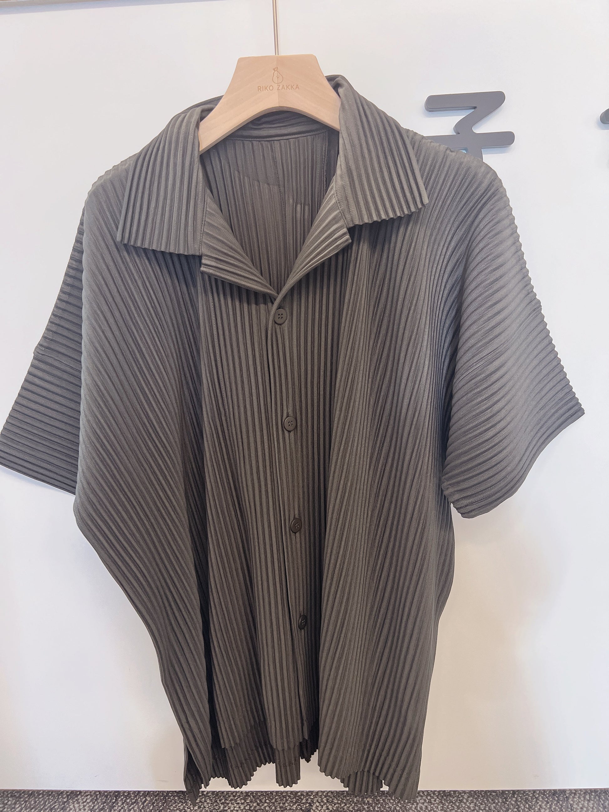 ISSEY MIYAKE Homme Plisse Short Sleeves Shirts JJ102 Dark Green Size 2