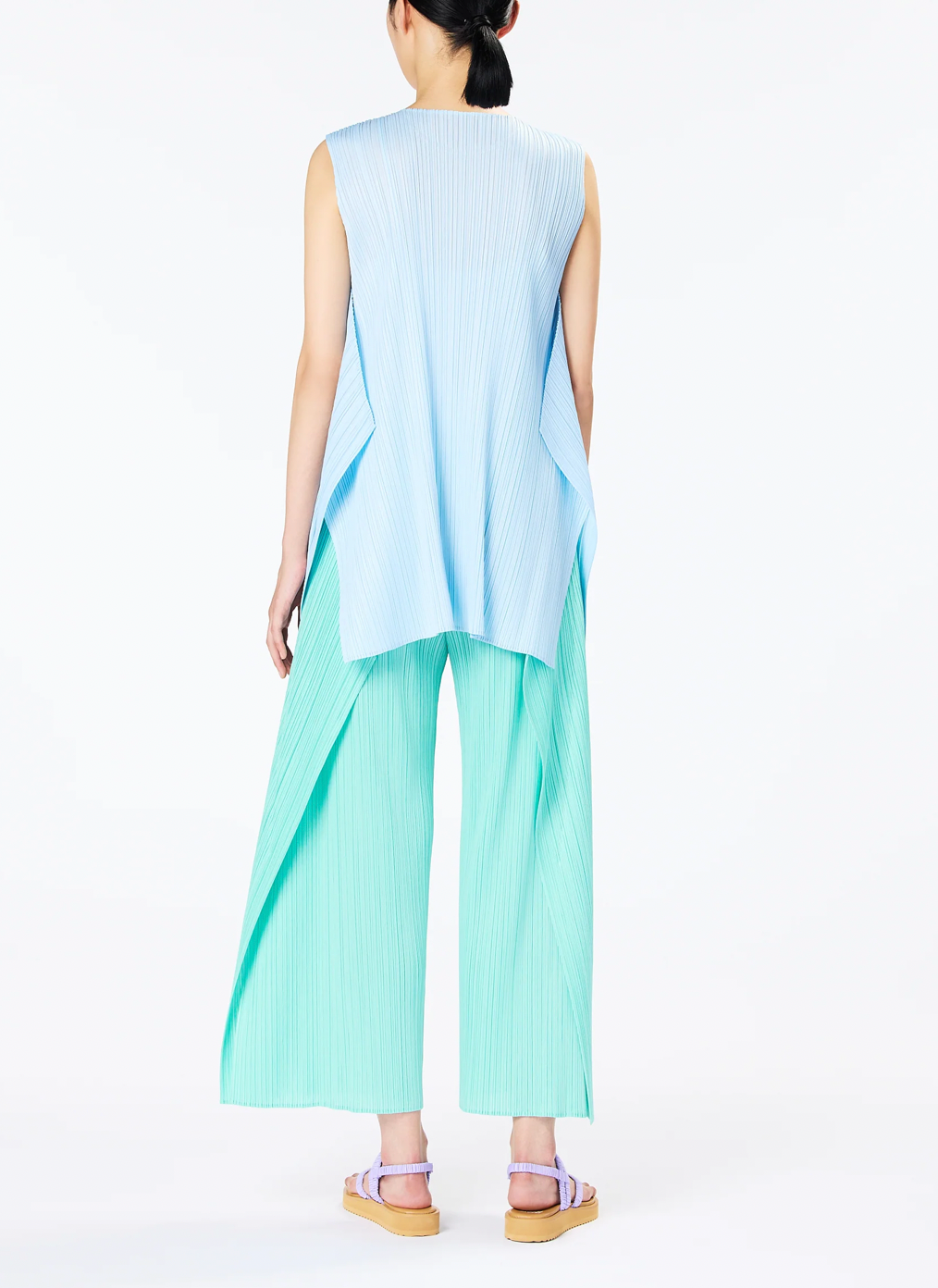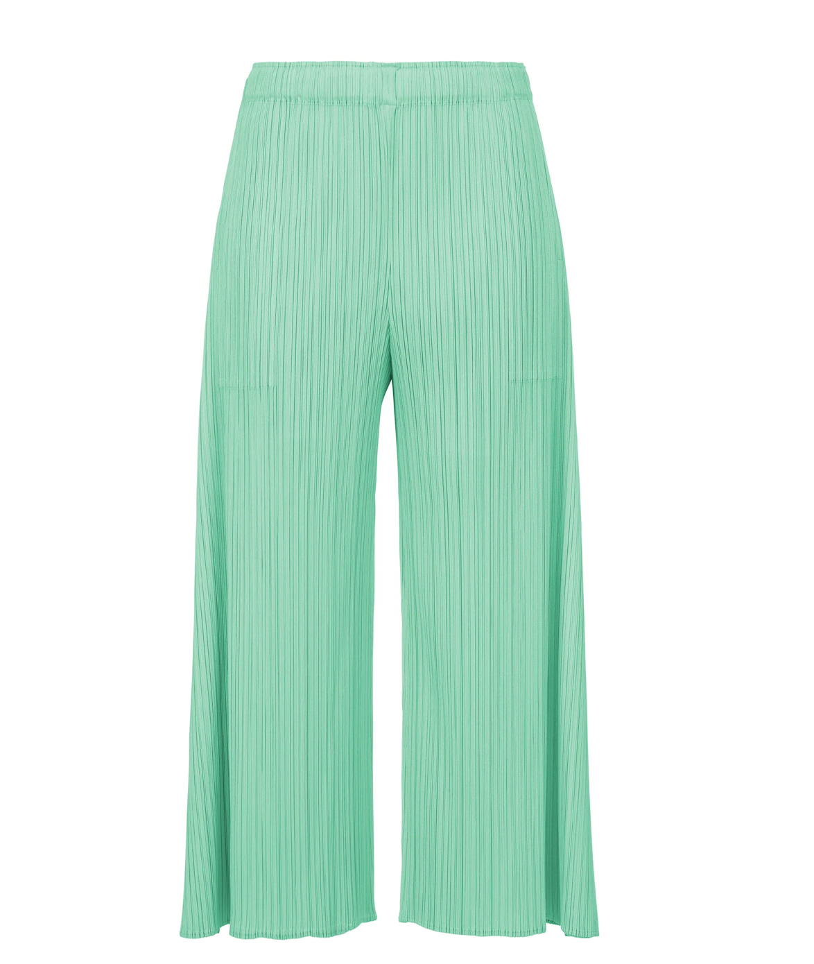 These Flared Pleated Trousers In Turquoise Green Flutter Elegantly When Moving Thanks To Their Draping Side Panels And Slits. They Have Two Pockets And An Elasticated Waistband. Monthly Colors : June Presents Relaxed And Voluminous Silhouettes In Colours Inspired By The Seaside.