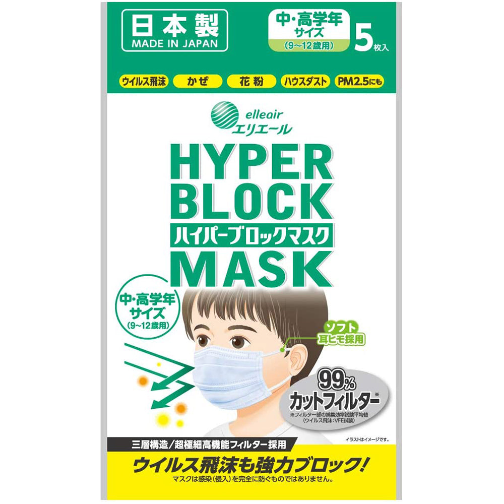 Japan HYPER BLOCK MASK Big Kids Mask 5pcs for 9-12 years old children