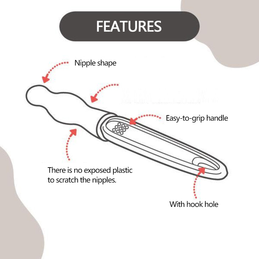 Designed to resemble the nipple head so it can be cleaned snugly, the handle is long and easy to use with a brush that can clean the inside of the nipple.