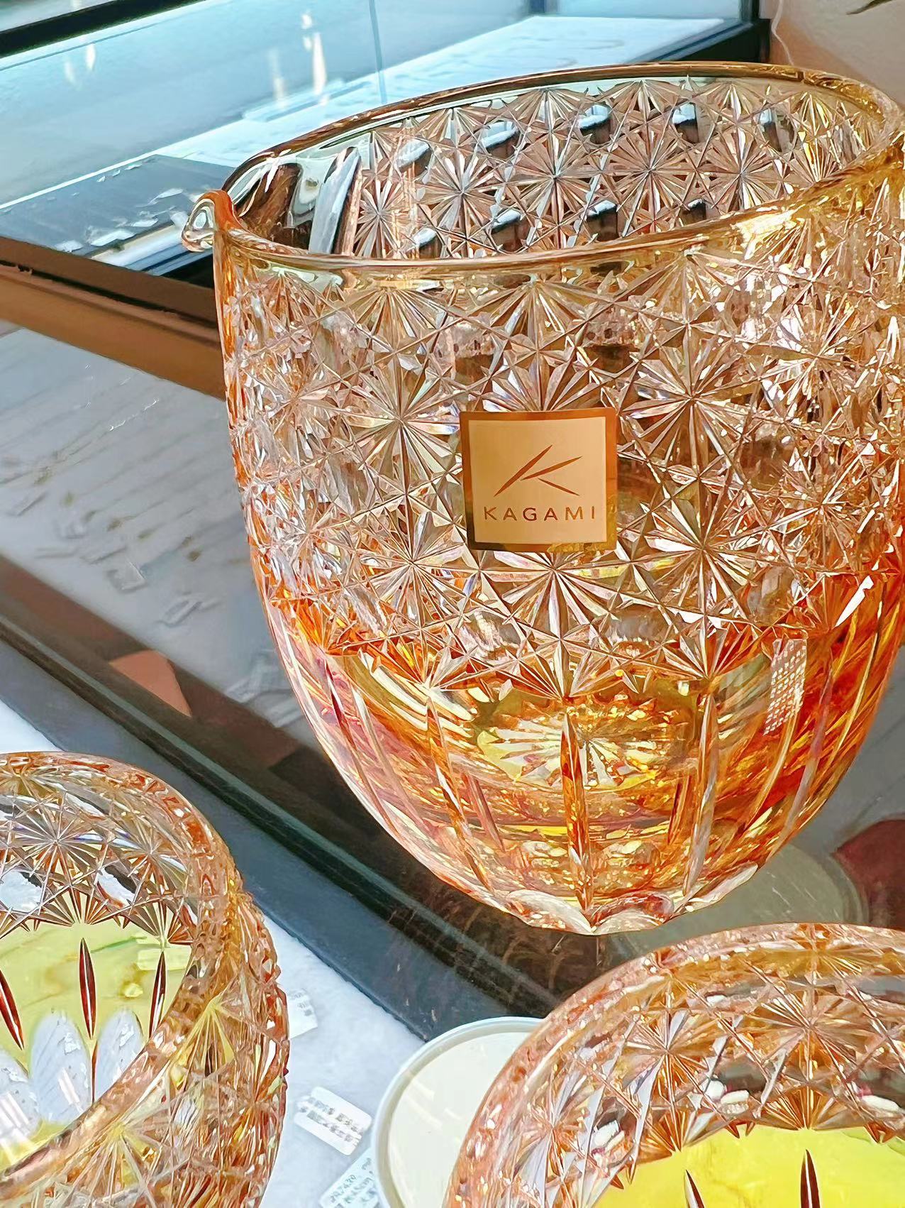 Exquisite Edo Kiriko cut glass with symbolic asanoha patterns.